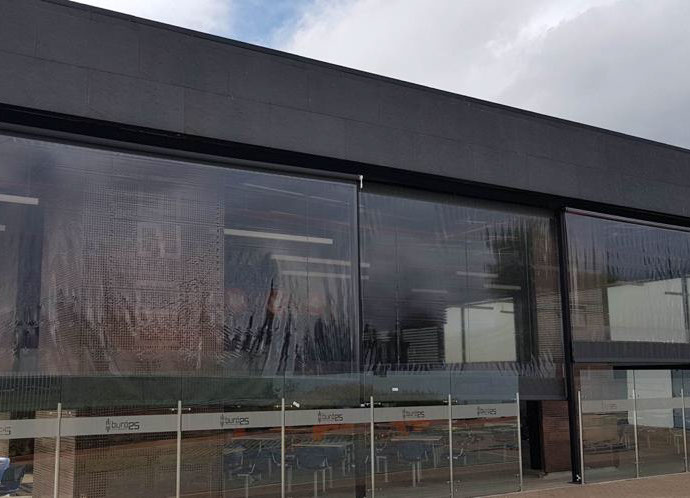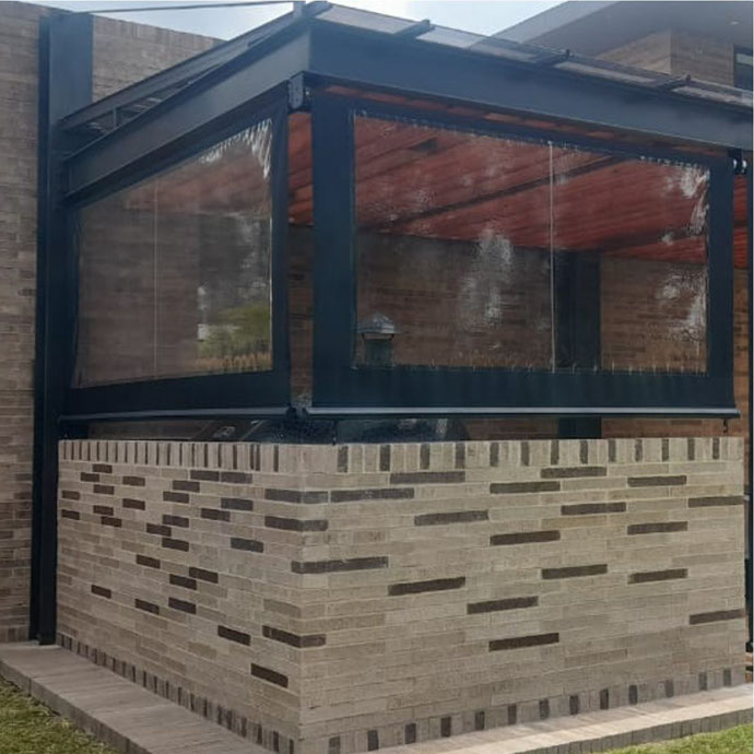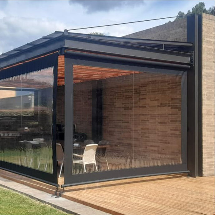Las ofrecemos con un sistema guiado a través de guayas laterales que permiten enrollar y desenrollar la cortina a conveniencia o con anclajes al piso.