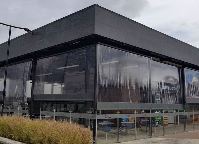 Elaboradas en PVC transparente o en PVC transparente con diseño. El contorno de las cortinas puede ser en PVC (green, black o white).